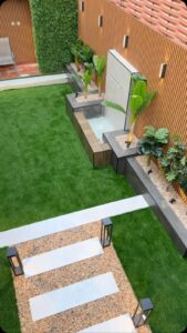 فريقنا يضم مهندسين وفنيين متخصصين يعملون على تنفيذ مشاريع متقنة تراعي أدق التفاصيل وتجمع بين الجمال والعملية، مع التزام تام بالمواعيد ومعايير الجودة. هدفنا هو أن نصمم لك حديقة تعكس ذوقك وتضيف قيمة حقيقية لممتلكاتك.