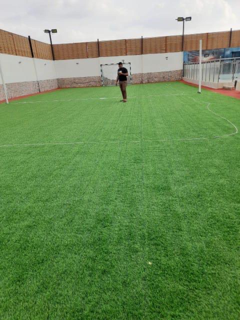 • وضع غطاء شبكي أو بلاستيكي لمنع نمو الأعشاب الطبيعية أسفل العشب الصناعي.